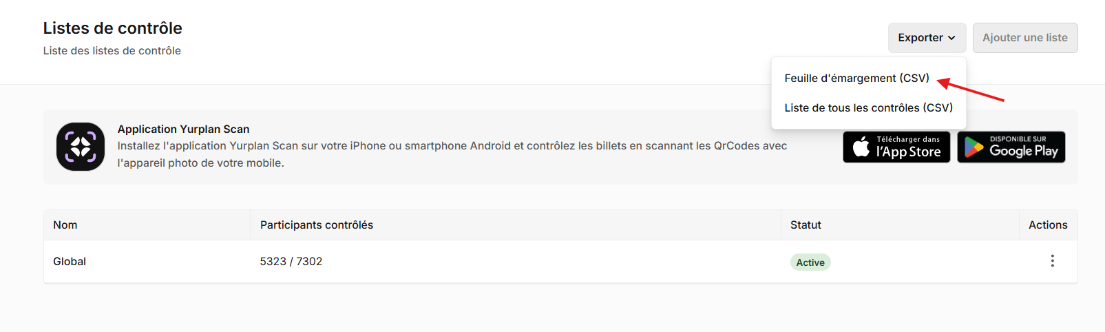 Vous pourrez par la suite imprimer ce document puis checker les cases à l'entrée de l'évènement pour chaque participant recensé sur la liste.