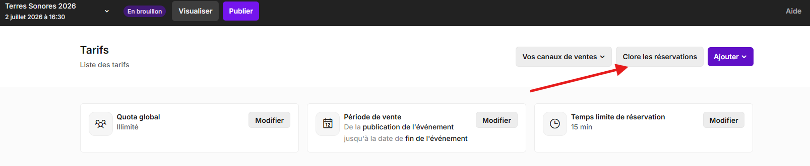 Vous pouvez vous référer à notre guide au guide dédié configurez la période de vente de votre billetterie