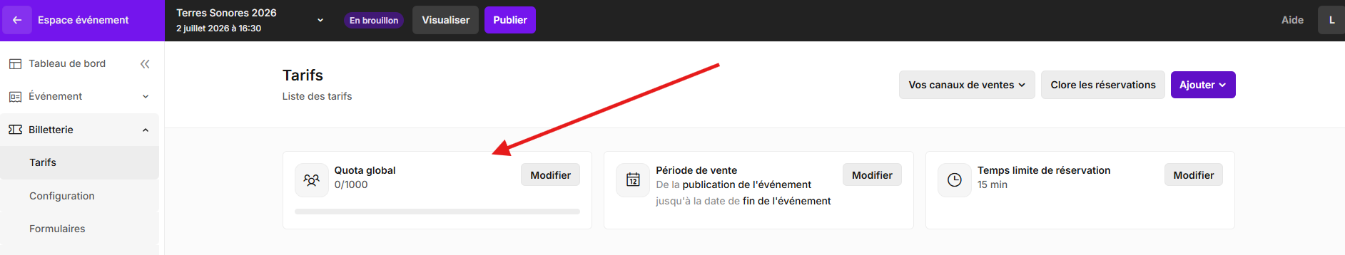 Si besoin, augmentez le quota pour relancer la vente. Vous pouvez vous référer à notre guide dédié quota global