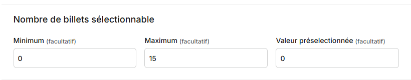 💡 Cause probable : le minimum et le maximum de billets sélectionnables par commande ont été définis à 0.