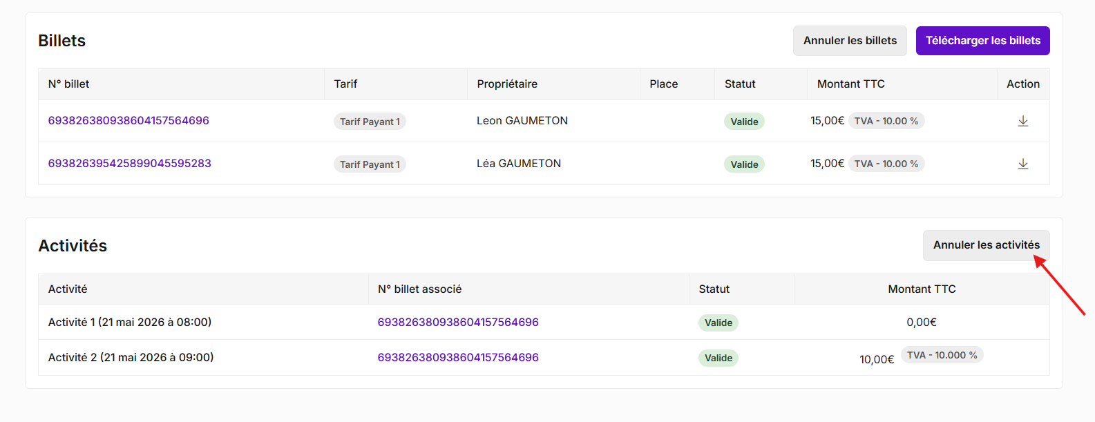 Ces derniers pourront aller annuler/modifier directement leurs activités gratuites depuis leur espace participant