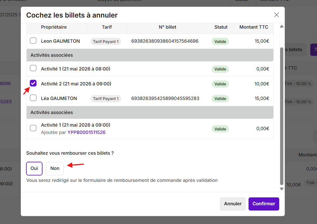 Si les activités sont payantes, seuls les membres de l'organisation ont à la main pour annuler et/ou rembourser des activités.