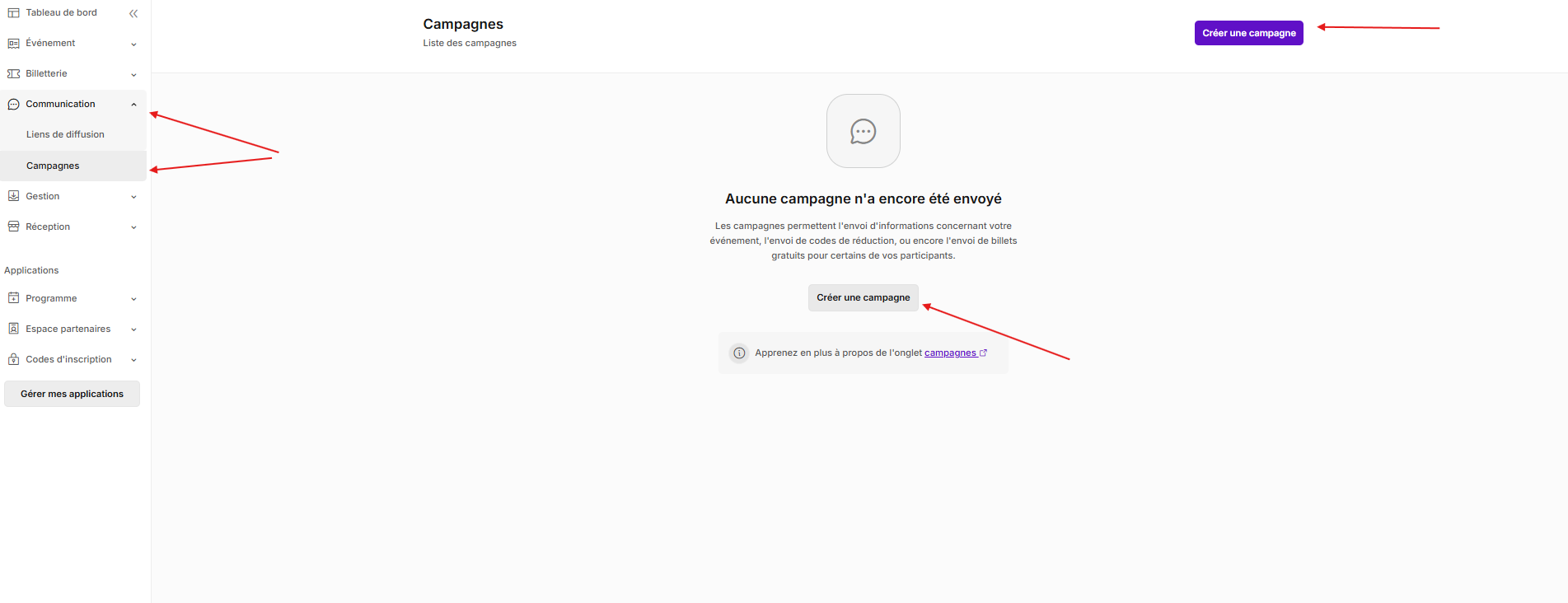 - Cliquez sur le bouton créer une campagne