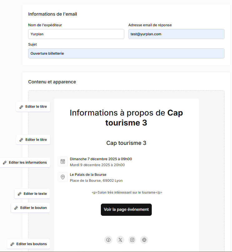 💡Vous pouvez retrouver cette campagne dans l'onglet Communication de votre interface Organisateur, et la dupliquer autant de fois que vous le souhaitez pour réutiliser vos configurations