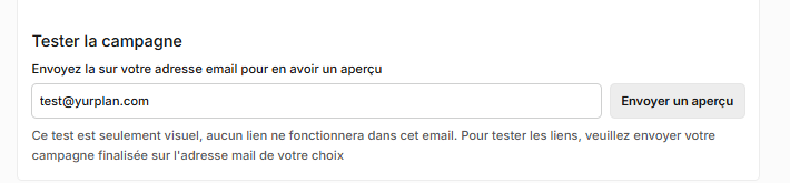 ⚠️Ce test est seulement visuel, aucun lien ne fonctionnera dans cet email. Pour tester les liens, veuillez envoyer votre campagne finalisée sur l'adresse mail de votre choix