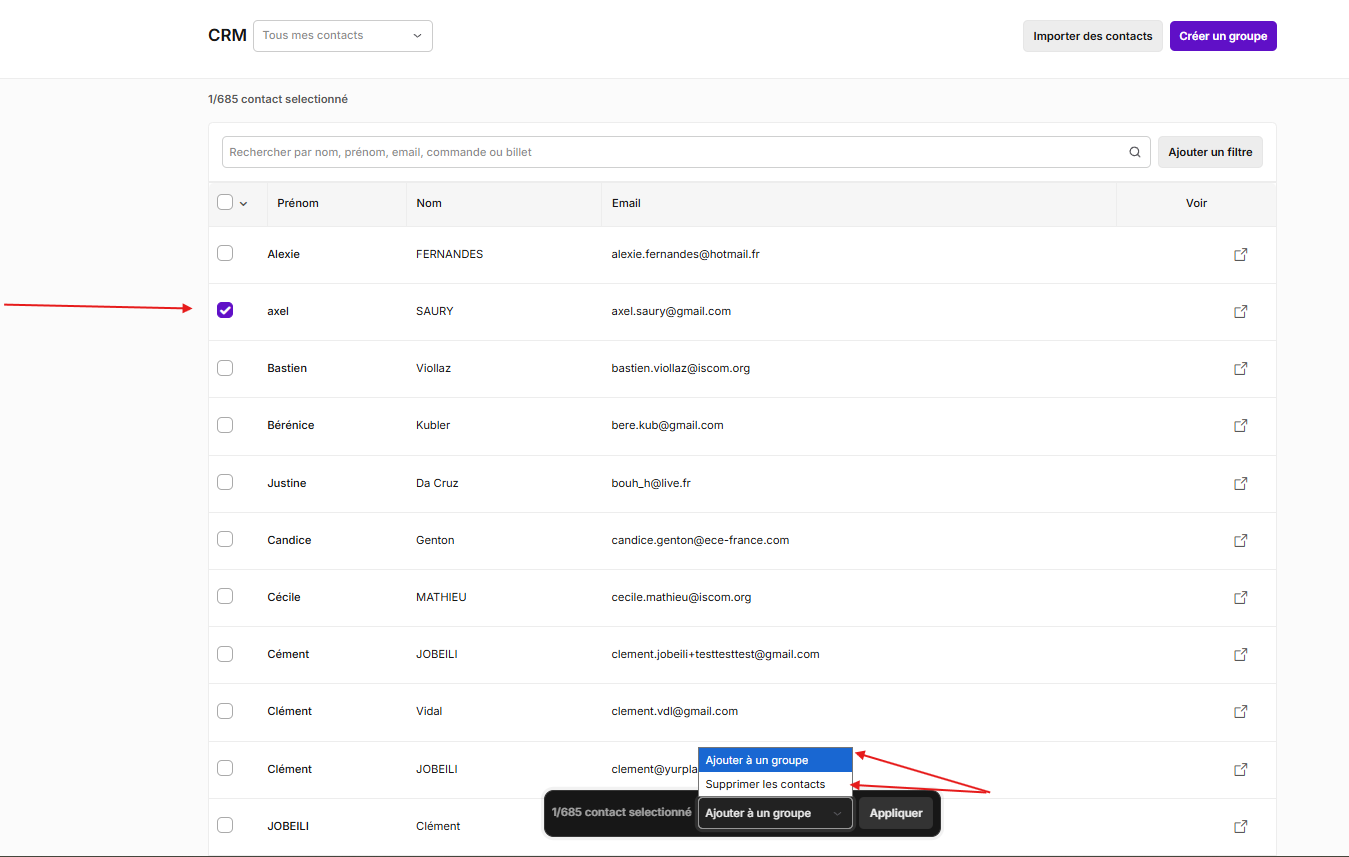 - Sélectionner le groupe de contacts souhaité présent dans la liste déroulante CRM