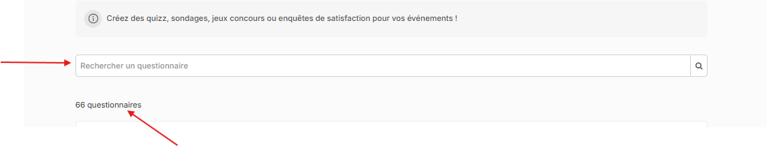 - Le champ Rechercher un questionnaire vous permet de retrouver rapidement un questionnaire par son nom.